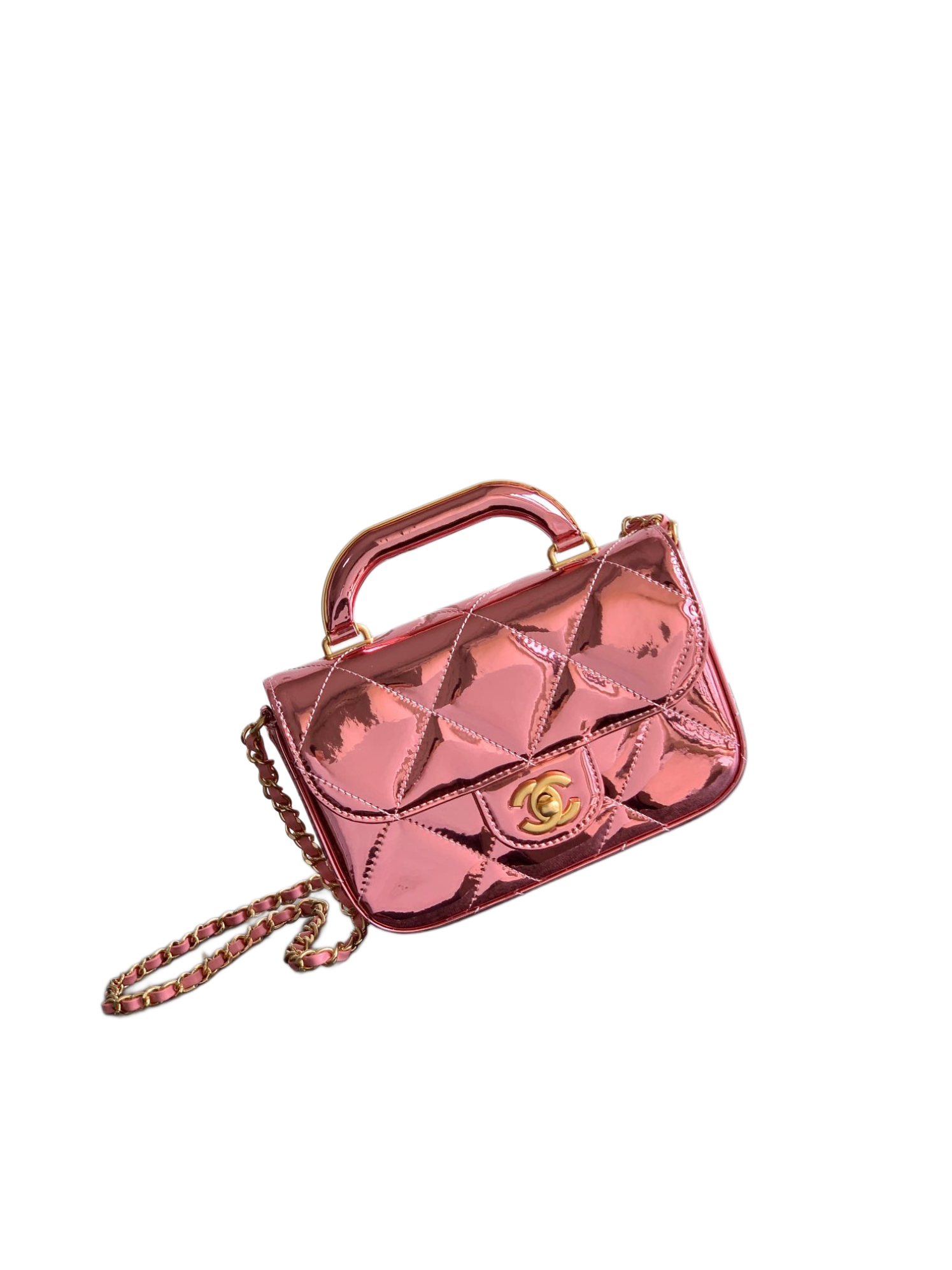 Kleine Clutch Mit Kette Kalbsleder Mit Spiegel Effekt Goldfarbenes Metall Helles Fuchsie