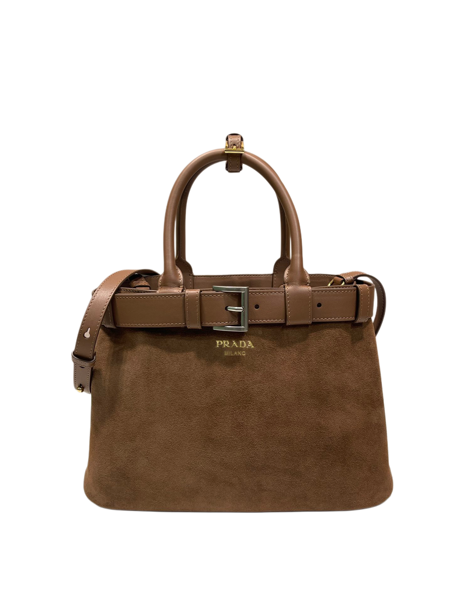 Mittelgroße Buckle Tasche Aus Wildleder Mit Gürtel Kakaobraun
